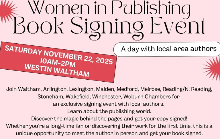 Join me at the Women in Publishing event hosted by local chambers of commerce. I'll have copies of my book for purchase, along with literary-themed t-shirts. The first 200 visitors to my booth will get a complimentary bookmark. Hope to see you there!